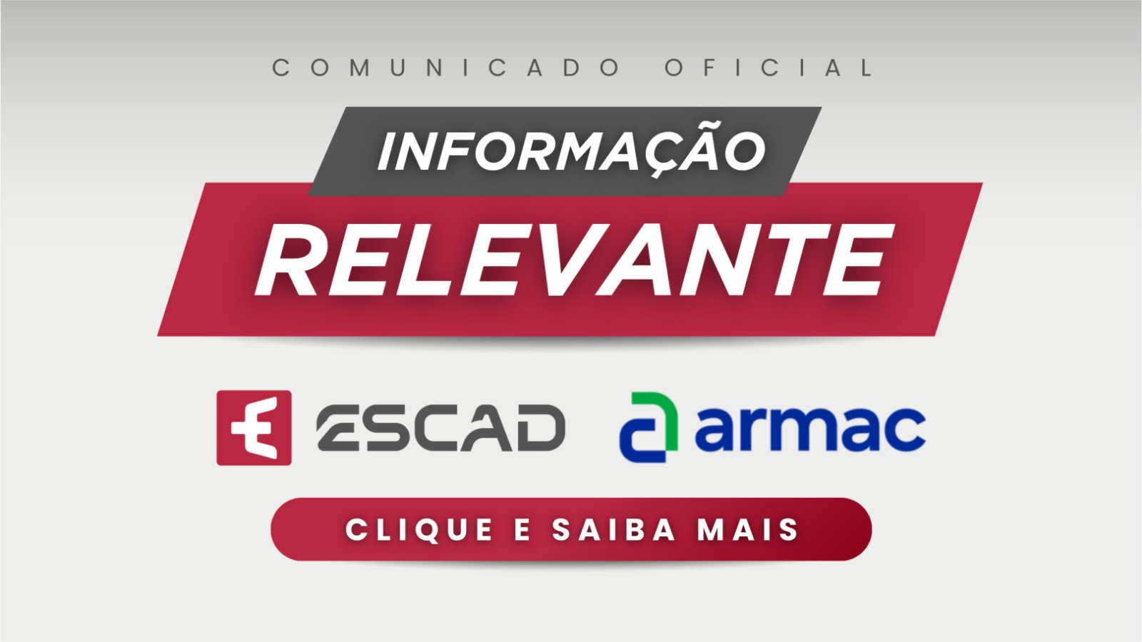 É com grande satisfação que comunicamos uma importante e positiva evolução em nossa jornada. Informamos que a ESCAD RENTAL SA, acaba de estabelecer uma parceria estratégica com o maior player de locação e operação de máquinas e equipamentos do país, a ARMAC, que passará a deter participação na Escad, trazendo uma série de benefícios, tais como: